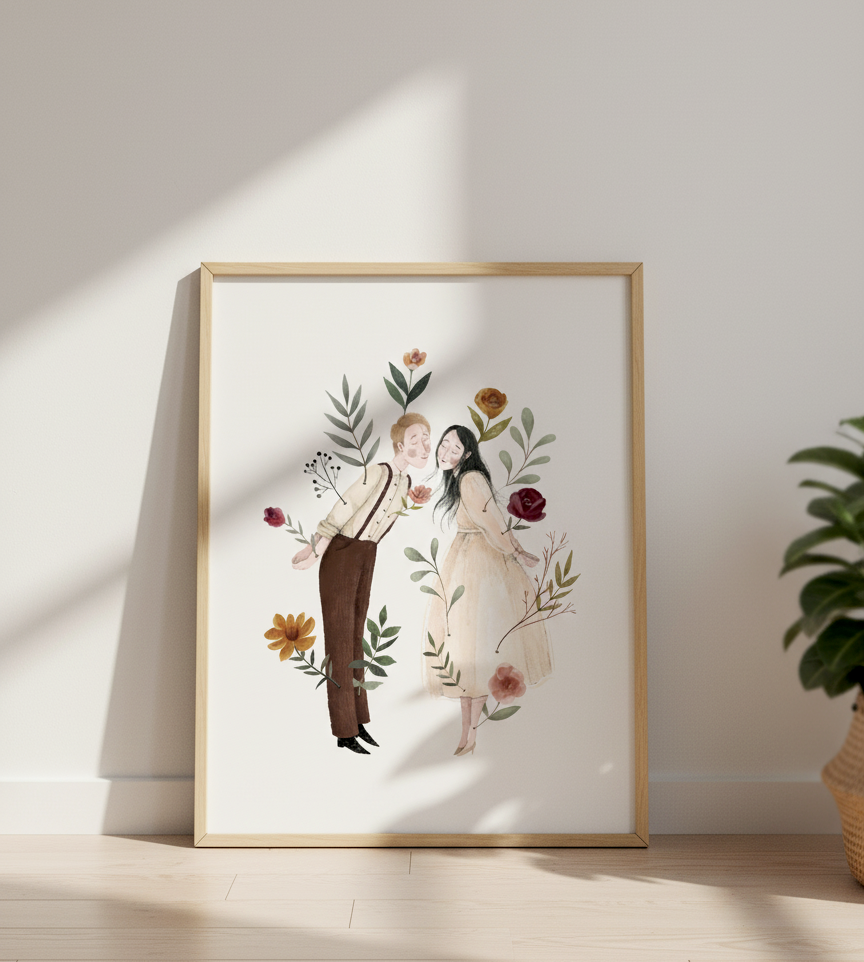To wyjątkowy prezent dla pary, ukochanej osoby lub miłośników minimalistycznych, emocjonalnych ilustracji.